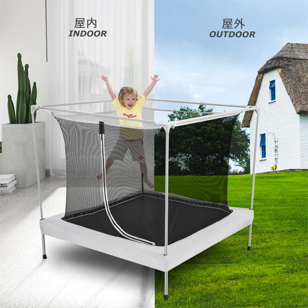 LUCKY BIG NINE 1.4 mスクエアキッズトランポリンは3~8歳のお子様に最適、リビングでもベランダでも大活躍です。2.5 mmの自動車用鋼管フレームと8 mmナイロン・ファイバーグラス四方向ジョイントでガタつきを徹底ブロック。金属スプリングを廃し、高反発バンジーコードで挟まれ事故をゼロに。高密度メッシュの安全ネットと食品規格PVCフットガードで360°守ります。静音クッションが振動と傷を同時にカットし、ご近所トラブルなし。19 kg軽量設計でキャンプや公園への持ち運びもラクラク。高弾性・耐摩耗PPマットは1万回ジャンプでもへたらず、よちよち歩きの頃から元気いっぱいの遊びまで長くお楽しみいただけます。
