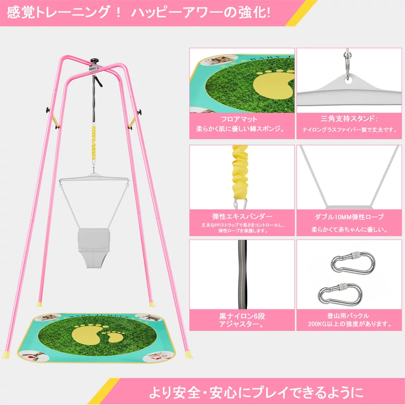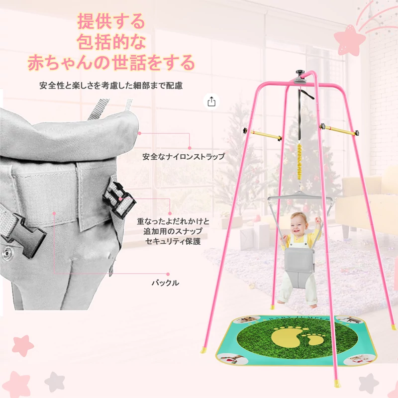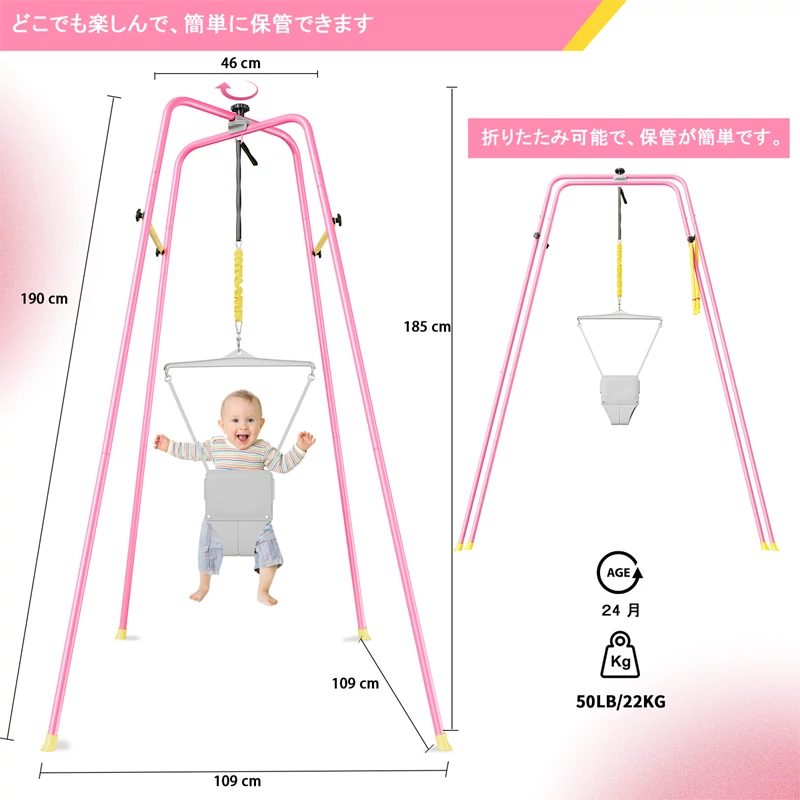 LUCKY BIG NINE ベビースタンディングスイング(スタンド付き、高さ調節可能、折りたたみ式、組立簡単)は6-24ヶ月のお子様のために開発されました。サドルシート+スチールフレームで最大45ポンドまで安全にサポートし、3段階高さ調節でロッカーにも早変わり。屋内・屋外どこでもジャンプOK。滑り止め静音設計で、折りたたみ時はわずか0.06 m³。笑顔と共に運動能力とバランス感覚を育てる、コスパ最強のベビーエクササイザーです。